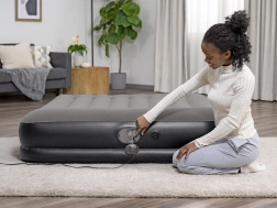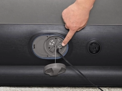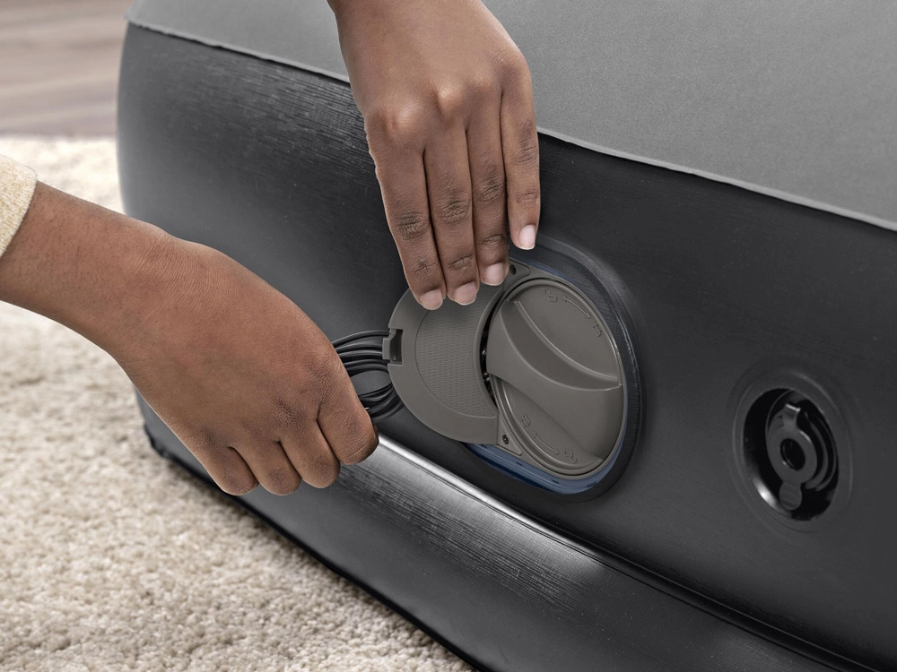 Inflado y desinflado sencillos con un solo botón. La alimentación por USB es compatible con adaptadores AC/DC y powerbanks: ideal en casa y de viaje.