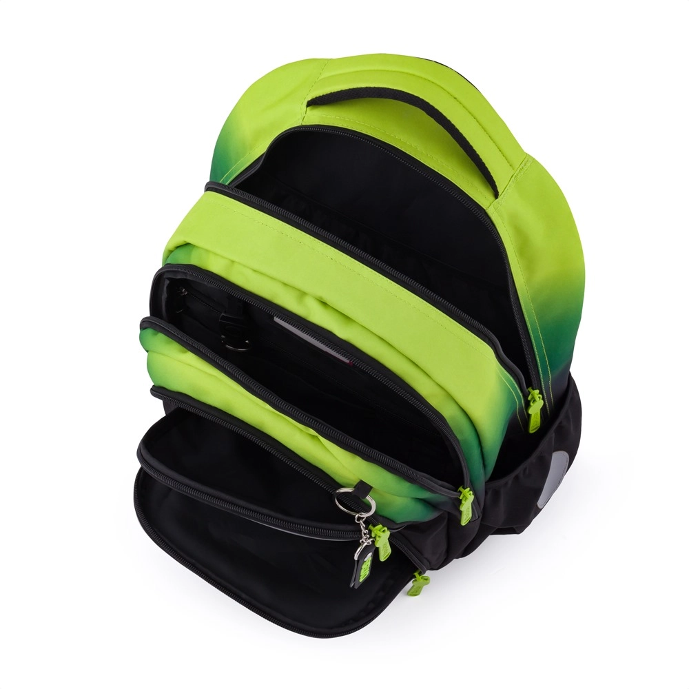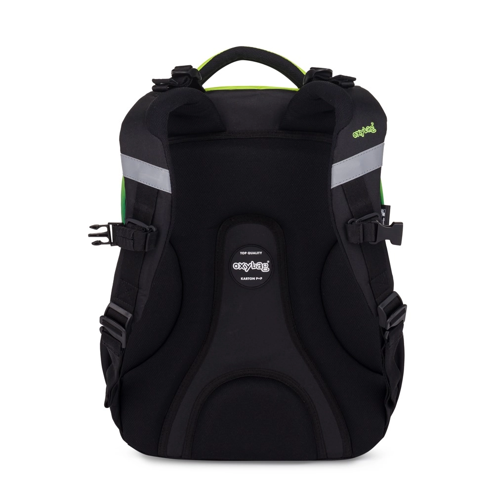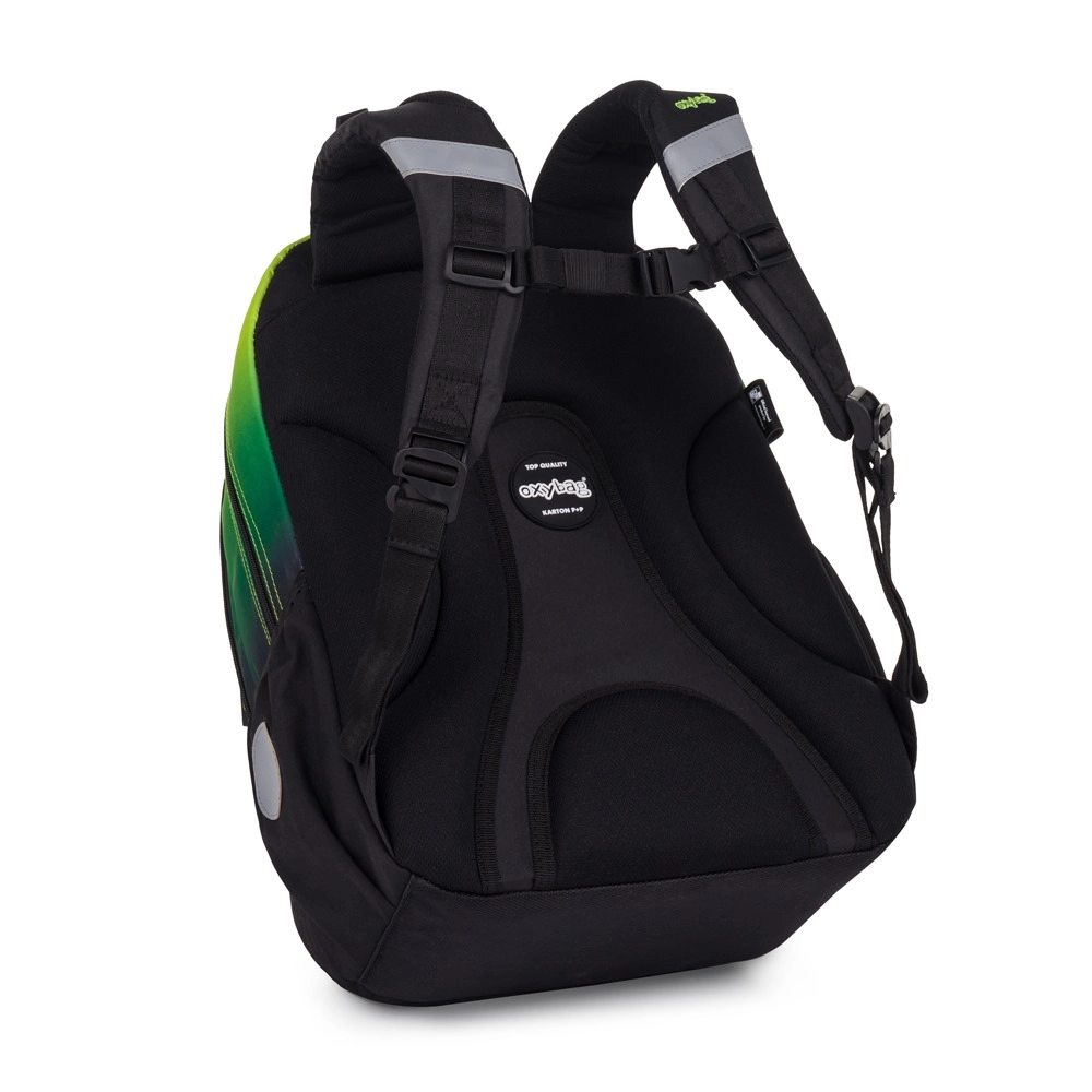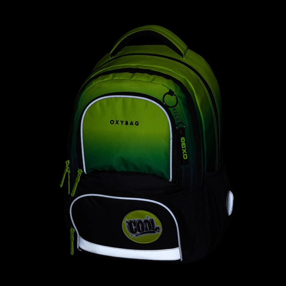 OXY NEXT Ombre es una mochila escolar bien pensada que combina comodidad, seguridad y organización práctica. Gracias al panel trasero ergonómico (42 cm) y a los tirantes acolchados y ajustables con correa de pecho, se lleva cómodamente incluso con carga completa. Los elementos reflectantes alrededor de la mochila aumentan la visibilidad de los niños al anochecer y con mal tiempo.