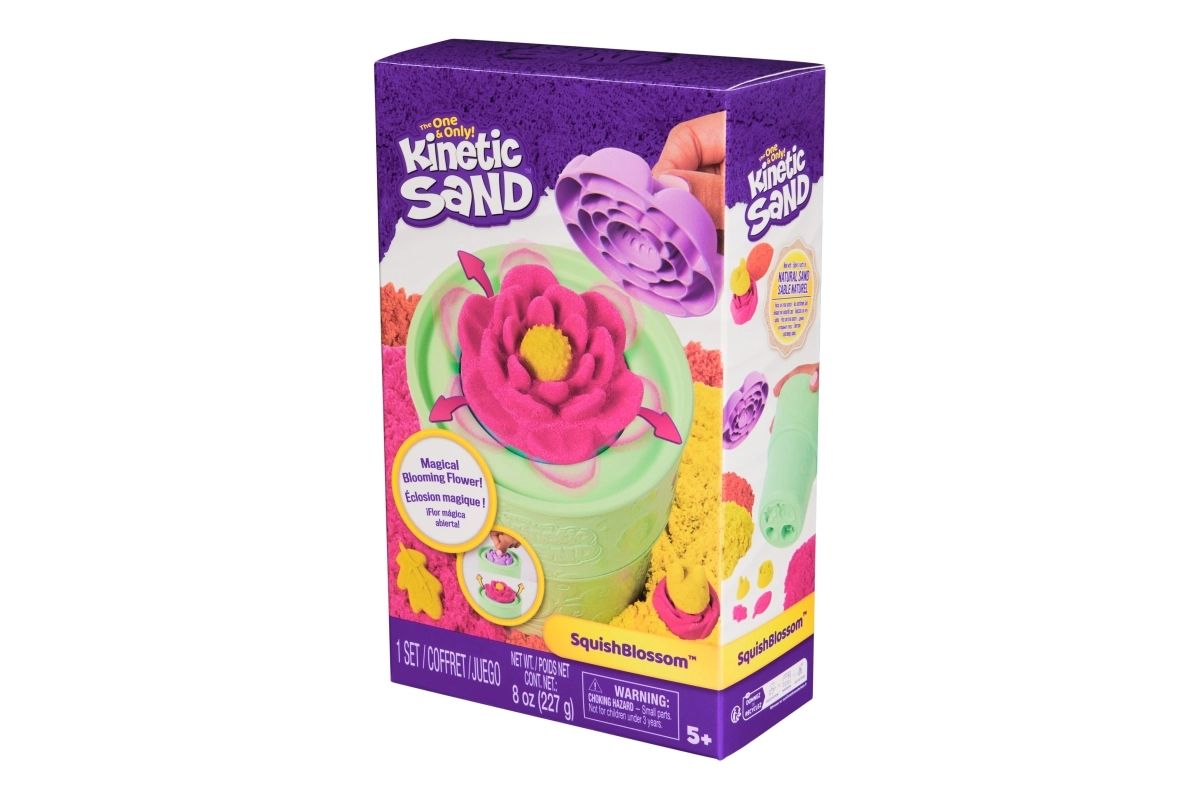 Descubre la magia de las creaciones florales con el set Kinetic Sand SquishBlossom. Vierte la arena sobre la base blanda, presiona el molde y observa cómo la flor florece mágicamente. Mezcla el rosa y el amarillo para obtener un tono coral anaranjado: cada presión aporta un nuevo efecto y patrón.