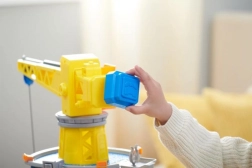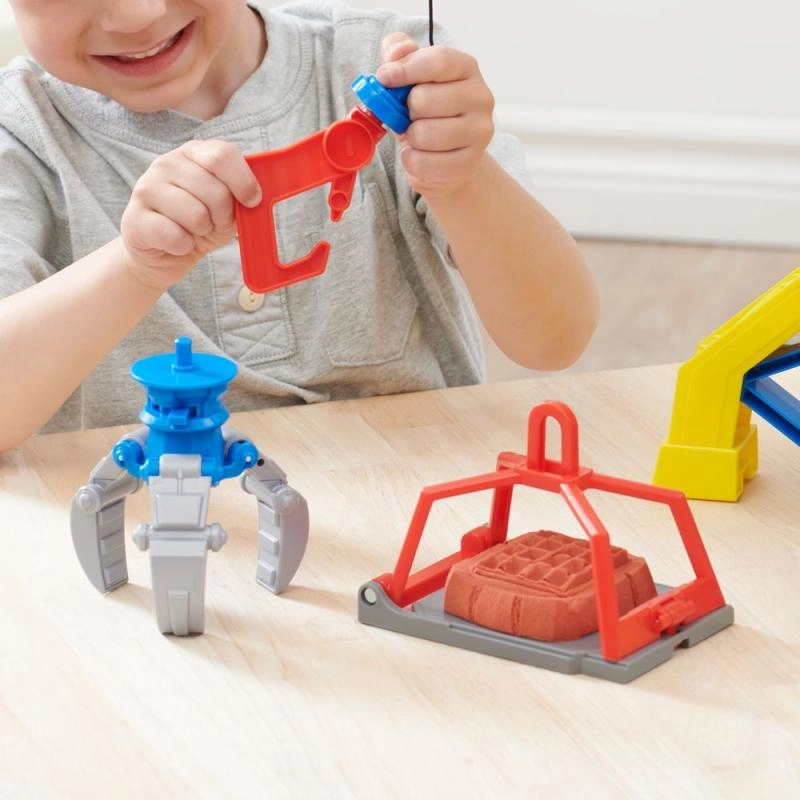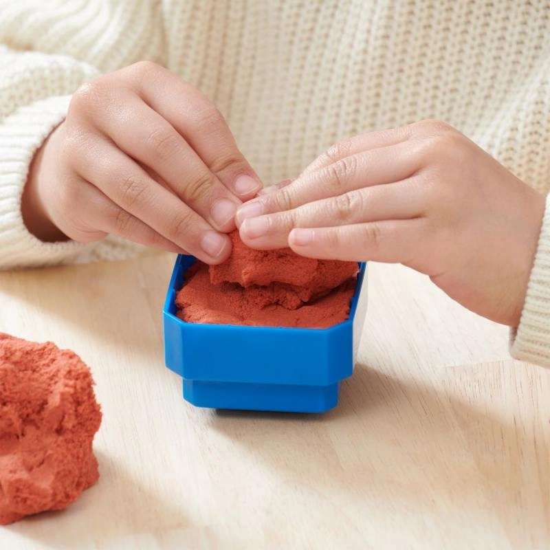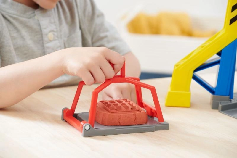 Permite a los niños crear sus propios bloques de construcción con arena cinética. Con la prensa accionada por la palanca roja, pueden crear y después trabajar sus propias construcciones.