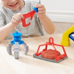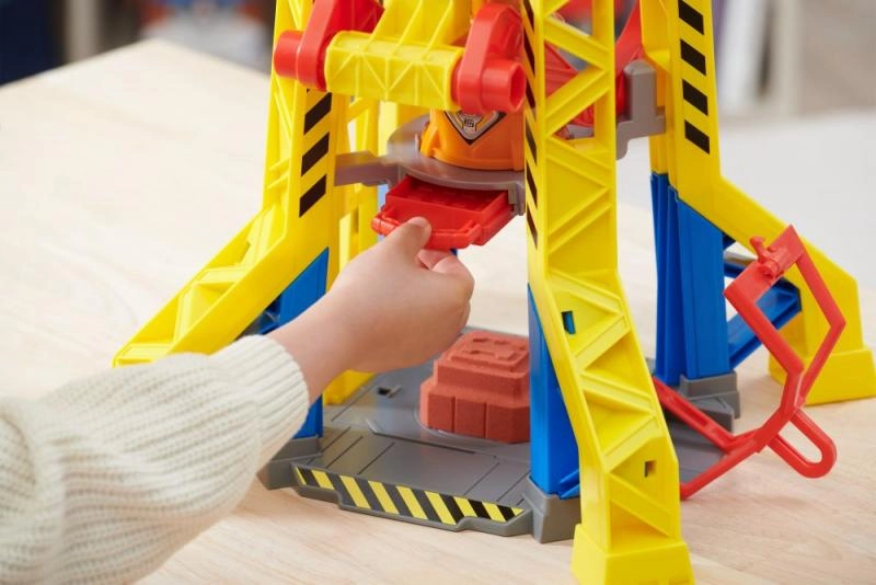 El set Rubble & Crew: Torre grúa incluye una torre grúa diseñada de forma realista, igual que en la serie, con herramientas de construcción destacadas adecuadas para niños. Esta torre cuenta con un sistema para moldear arena cinética, lo que permite fabricar tus propios bloques. Simplemente usa la gran palanca roja para accionar la prensa y crear tus propios ladrillos de construcción.