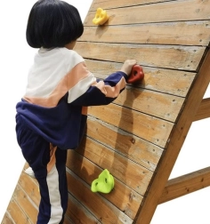 El material PP es resistente a los rayos UV, a las grietas y a los agentes atmosféricos, por lo que el set es ideal tanto para interior como para exterior. Cada presa y asa está diseñada para estabilidad y alta carga, para que el juego de los niños sea lo más seguro posible. El set favorece el correcto desarrollo de la motricidad gruesa, el pensamiento lógico y refuerza la autoconfianza.