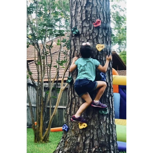 El set de presas de escalada TRIZAND transforma cualquier pared, casita de juegos o estructura de jardín en un lugar seguro y divertido para moverse. Las diferentes formas y colores vivos motivan a los niños a jugar, mientras que la superficie antideslizante proporciona un agarre seguro para manos y pies. Gracias a la instalación sencilla y a los accesorios completos, crearás un recorrido de escalada a medida.