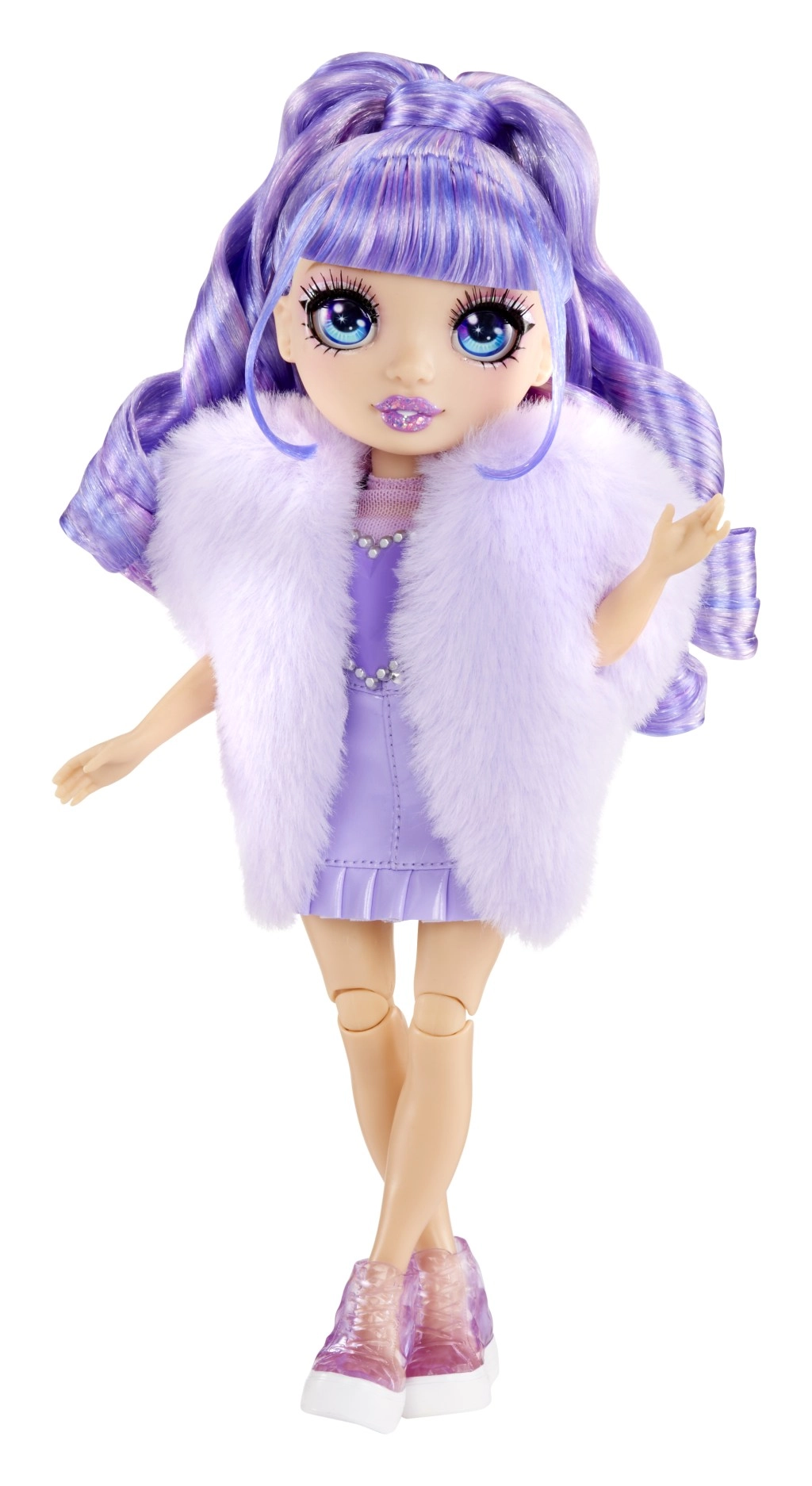 Violet brilla con un conjunto púrpura lleno de detalles. Cuenta con articulaciones móviles para posar y un cabello largo perfecto para peinar y estilizar.