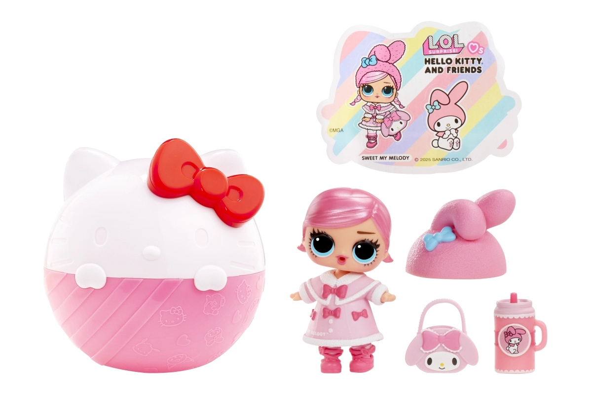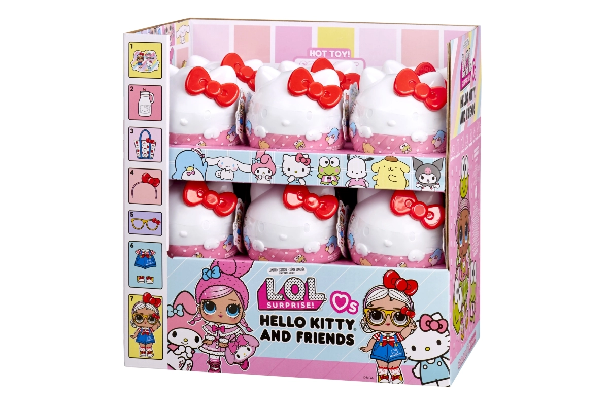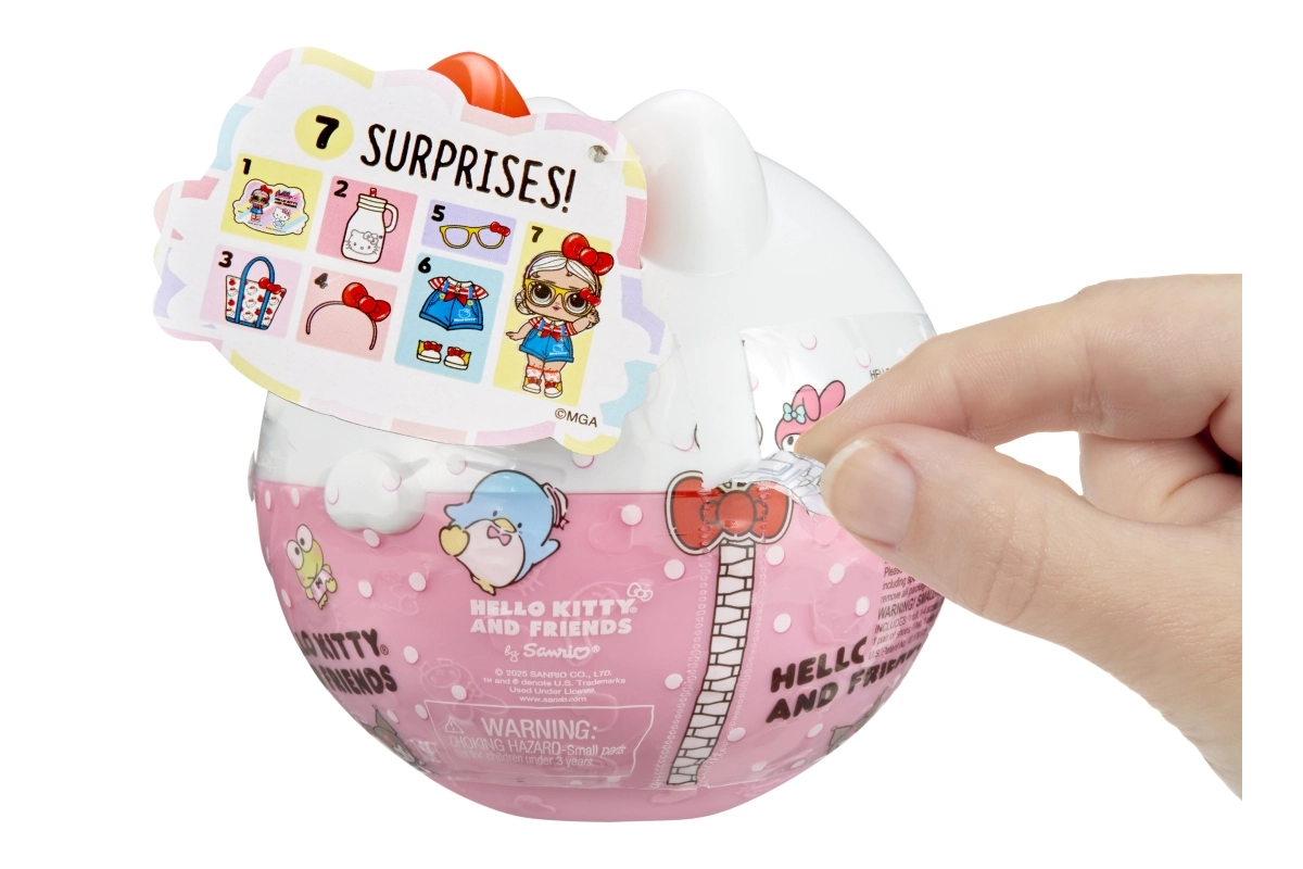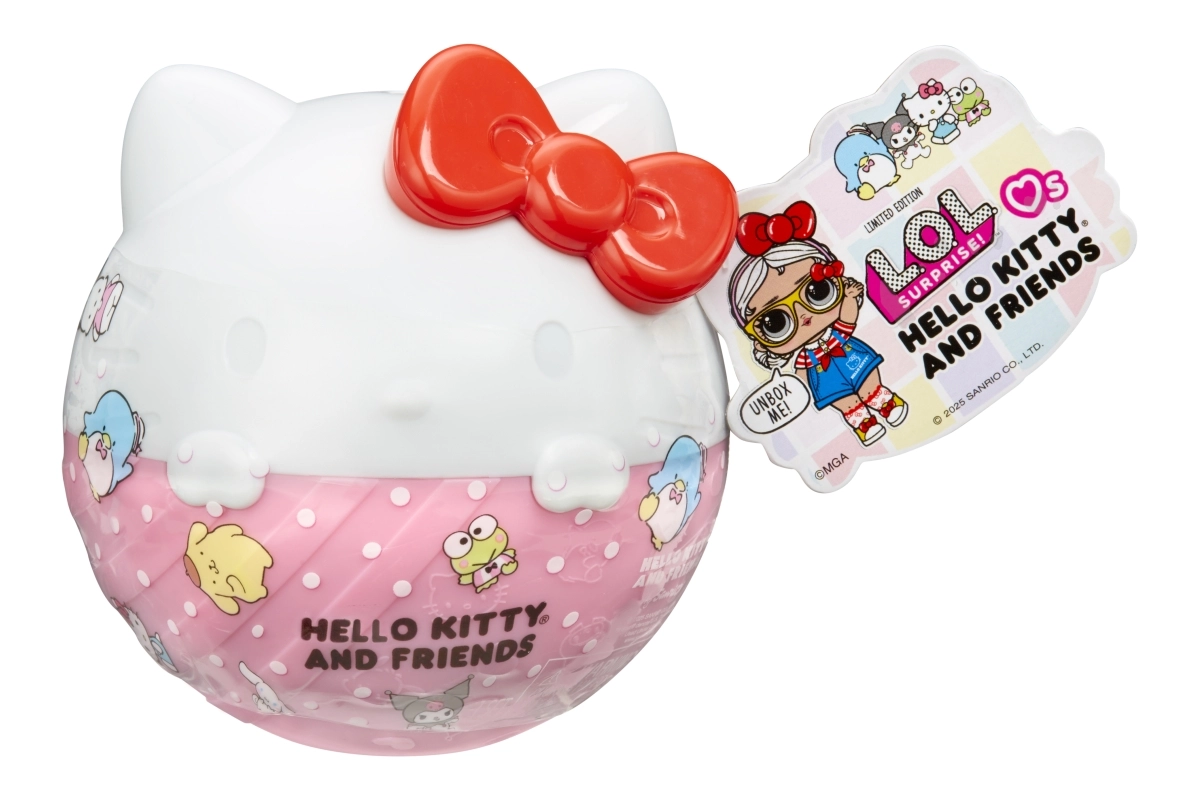 Descubre la magia de la colección L.O.L. Surprise! x HELLO KITTY y amigos en la segunda serie. En el adorable envase con forma de gatita y lazo rojo se esconde 1 muñeca coleccionable con accesorios de moda, inspirada en HELLO KITTY, MY MELODY, KUROMI, POMPOMPURIN, CINNAMOROLL, TUXEDO SAM, KEROPPI y POCHACCO. ¡Te esperan estilo, sorpresas y mucha diversión al desempacar!