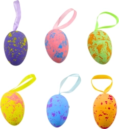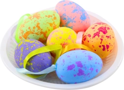 Los huevos cuentan con prácticos lazos que permiten colgarlos fácilmente en ramitas, coronas u otras decoraciones de Pascua. Están hechos de poliestireno ligero, resistente a daños y reutilizable.