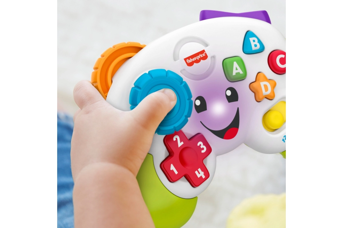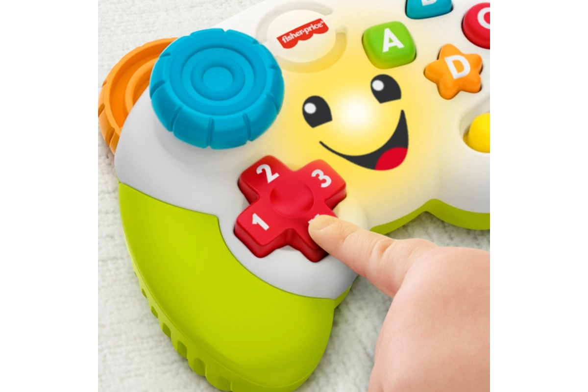 El alegre mando de juego de Fisher-Price ofrece un diseño realista con joystick móvil y botones ABCD. Cada pulsación activa elementos interactivos como luces, música y sonidos que encantan a los niños. El mando también ofrece dos modos de juego, divertidas actividades prácticas y canciones estupendas. Puede ajustar los idiomas según sus necesidades: polaco, húngaro, checo, eslovaco o inglés.
