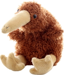 Pelaje marrón y esponjoso, largo pico beige y ojos dulces: exactamente como un kiwi de verdad.