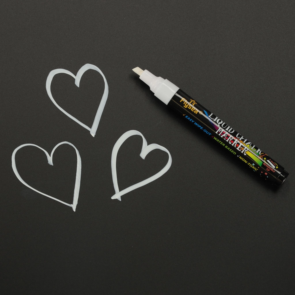 La tinta a base de agua se limpia de superficies lisas con un paño húmedo. Ideal para menús en pizarras, escaparates y decoración del hogar.