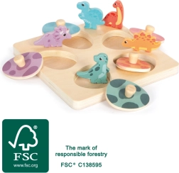 Descubra los divertidos y educativos puzzles de memoria de madera con dinosaurios hechos de madera 100 % certificada FSC. El set combina encajable y memory en uno: bajo los coloridos huevos de dinosaurio se esconden las figuras de dinosaurios correspondientes. Gracias a los pomos de madera, las piezas se sujetan fácilmente incluso por los más pequeños y el juego desarrolla de forma natural la motricidad fina, la coordinación mano-ojo, la paciencia, la concentración y la percepción de colores y formas.