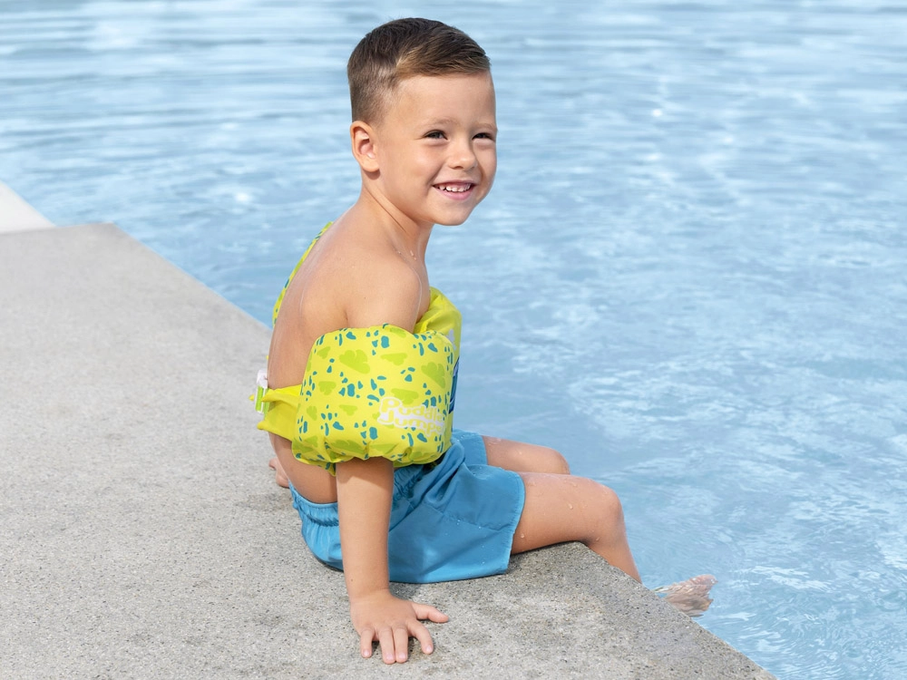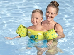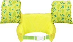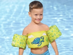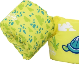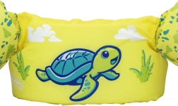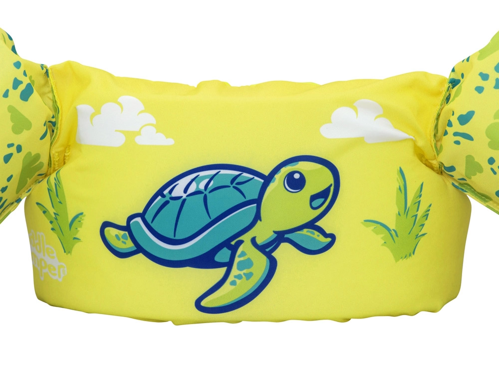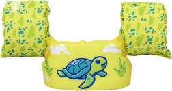 ¿Buscas una ayuda fiable para los primeros pasos en la natación? BESTWAY Puddle Jumper combina chaleco de flotación y manguitos en una sola pieza que ayuda al niño a mantener la postura correcta en el agua sin restringir el movimiento. El alegre motivo de tortuga y los vivos colores veraniegos motivan a la actividad y mejoran la visibilidad en el agua.