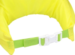 Hebilla de plástico robusta con correa ajustable que se abrocha en la espalda, de modo que el niño no pueda desabrocharla por sí mismo. Garantiza un ajuste firme y estable durante el juego y la natación.