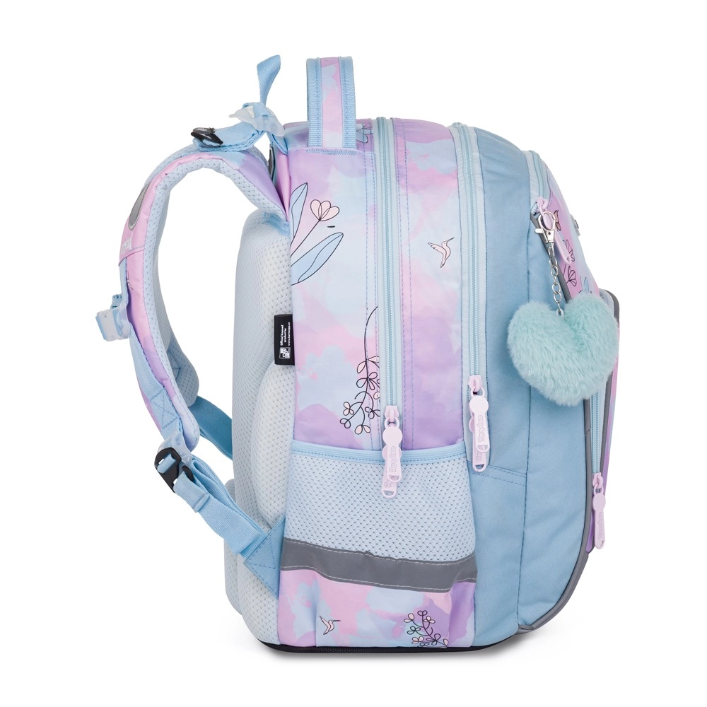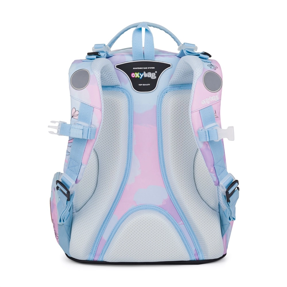 El juego escolar Oxybag OXY GO Colibrí destaca por su atractivo diseño y su fabricación ergonómica. La mochila es ligera, pesa solo 990 g, y está equipada con elementos reflectantes para una mejor visibilidad y seguridad. Respaldo de forma ergonómica y correas de hombro ajustables aseguran un uso cómodo y una correcta distribución del peso. Esta mochila es recomendada por fisioterapeutas porque protege la espalda de los escolares.