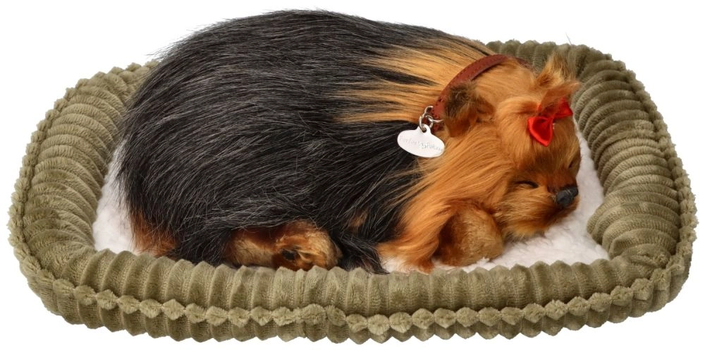 Descubre la magia de un compañero fiel sin alimentación, paseos ni desorden. El Perfect Petzzz cachorro roncador de yorkshire terrier resulta extraordinariamente realista: descansa plácidamente en una camita suave, tiene un pelaje detallado y ronca levemente, creando una atmósfera relajante.