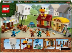 ¡Entra en la batalla por la seguridad de la aldea! Los piglins atacan desde un amenazante globo con forma de ghast con lanzador de discos, mientras Steve, Natalie y Dawn defienden a los aldeanos, el mercado y su restaurante de pollo frito. La fuente se puede “hacer explotar” mediante un elemento oculto y en el tejado del restaurante te espera una gran gallina con función de puesta de huevos.