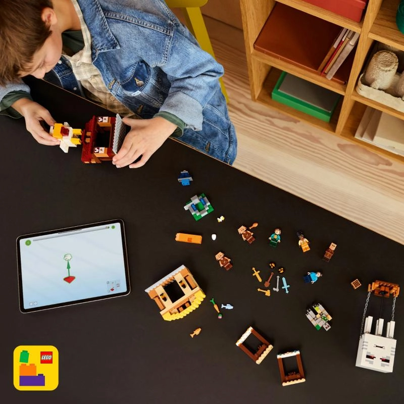El set aporta la atmósfera auténtica de MINECRAFT: arquitectura en bloques, mobs y personajes favoritos y un montón de elementos interactivos para el juego creativo. Con la app LEGO Builder, los niños pueden acercar y girar los modelos en 3D y seguir el avance de la construcción.