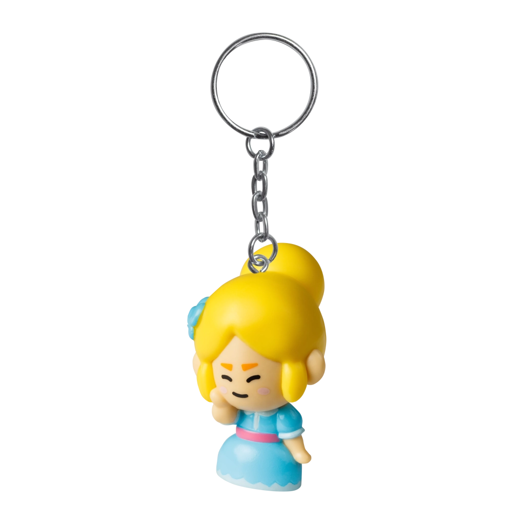 Un aro metálico robusto con cadena corta se fija de forma fiable a las llaves o a la cremallera de la mochila. El cuerpo de la figura es de plástico resistente, pensado para el uso diario.