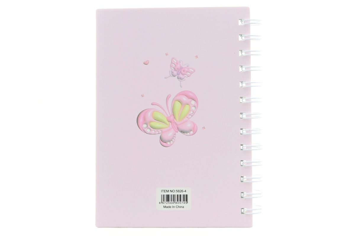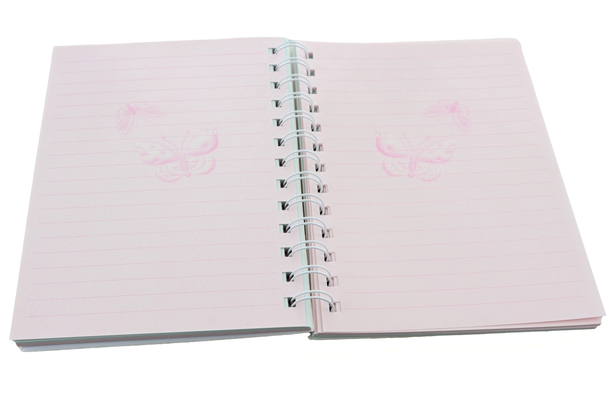 Diversos colores pasteles con un llamativo motivo “Butterfly” en la portada aportan personalidad al cuaderno.