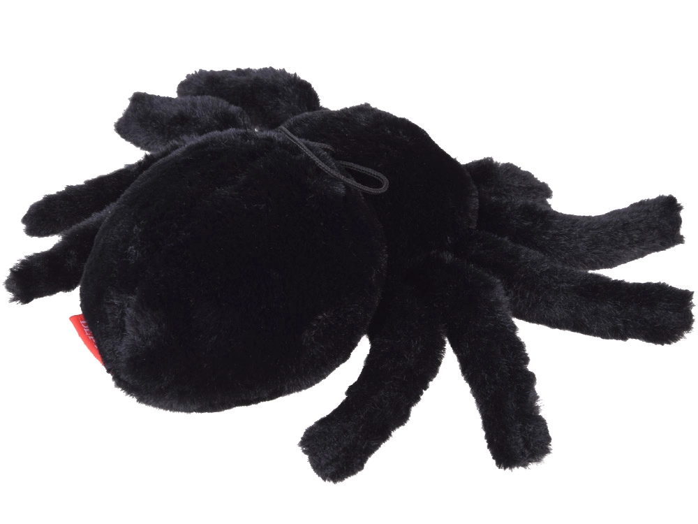 La tarántula de peluche parece viva gracias a su elaboración detallada.