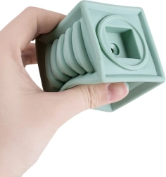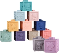 Gracias a las diferentes formas y texturas, los cubos apoyan el desarrollo de las habilidades motoras y manuales del niño.