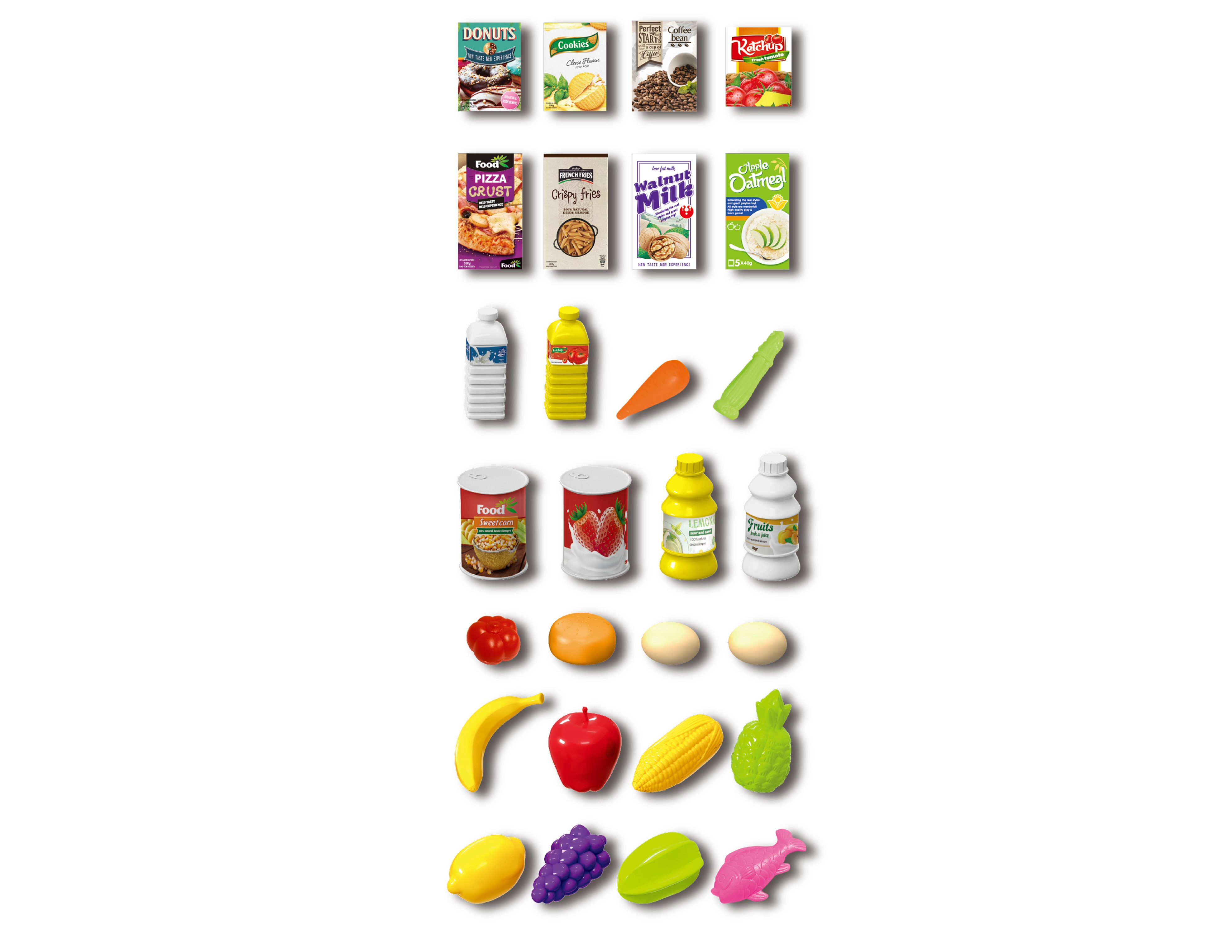- Set completo: 56 piezas de alimentos para un juego realista.
