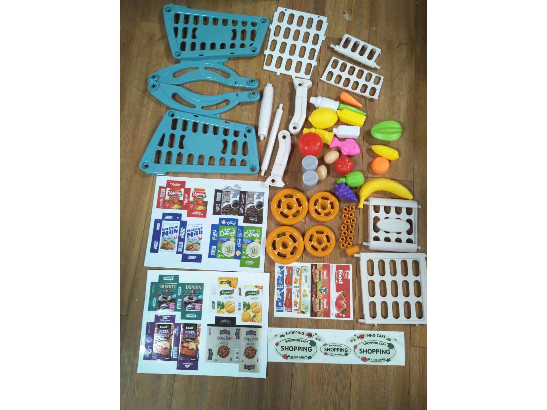 El carrito de la compra para niños con abundantes accesorios encantará a todos los pequeños comerciantes. Incluye 56 piezas de alimentos y un manual ilustrado para un montaje sencillo. Su construcción estable y las dimensiones de 40 × 24,5 × 44 cm son ideales para jugar en casa o de viaje.