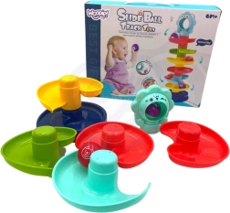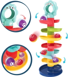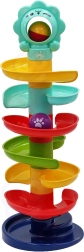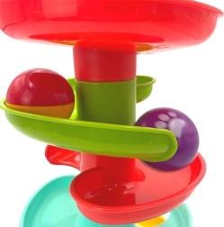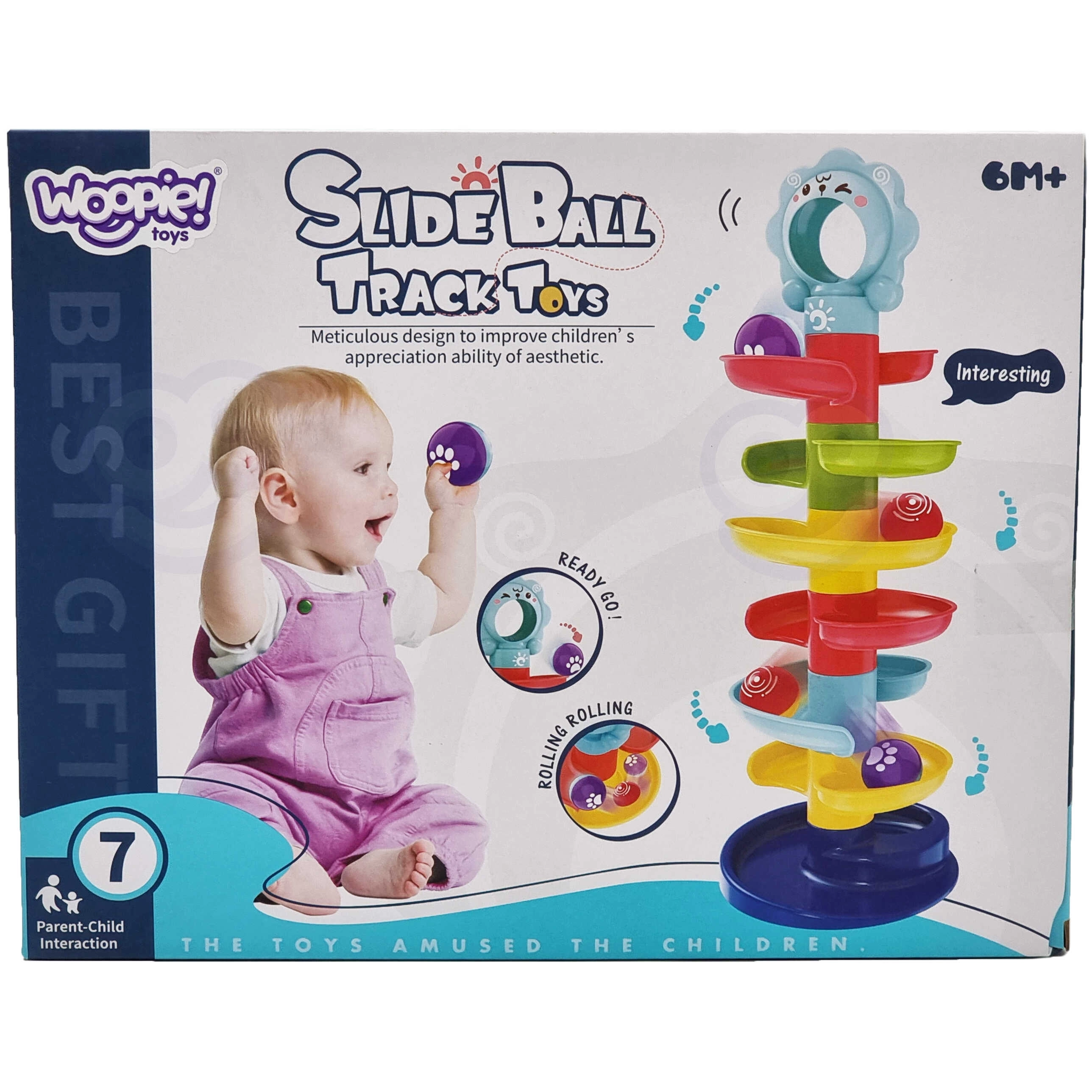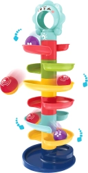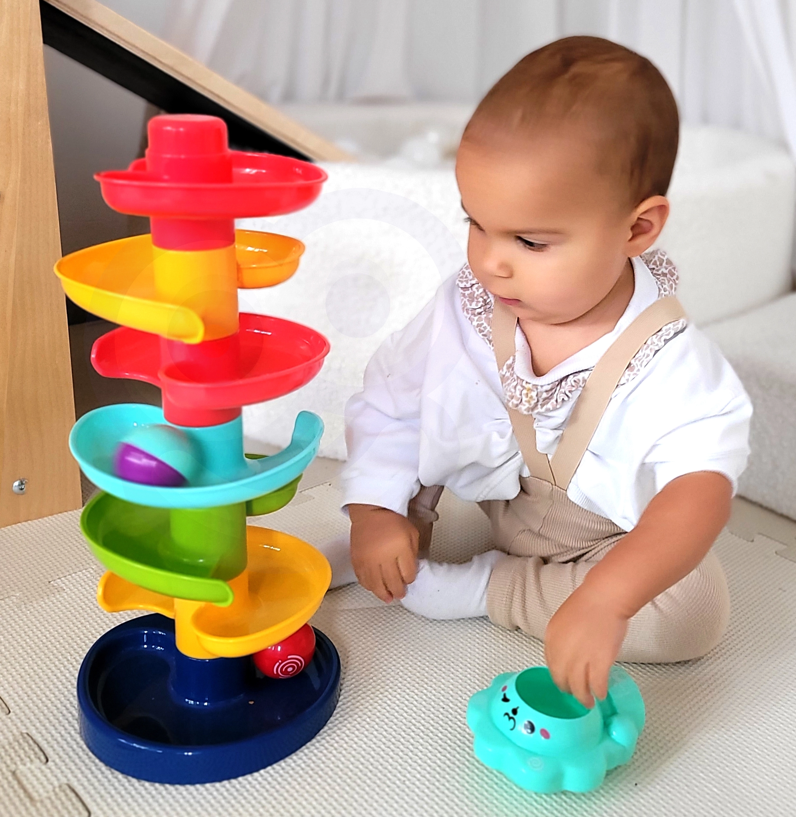 Esta pista de canicas única de la marca Woopie es un elemento de juego ideal para niños a partir de 6 meses de edad. Gracias a la torre en espiral, los niños pueden seguir con la vista cómo las bolas ruedan de arriba hacia abajo, lo que ayuda a desarrollar su coordinación y el seguimiento visual. El tamaño y el peso de las bolas son ideales para las manos pequeñas, lo que permite una manipulación sencilla.