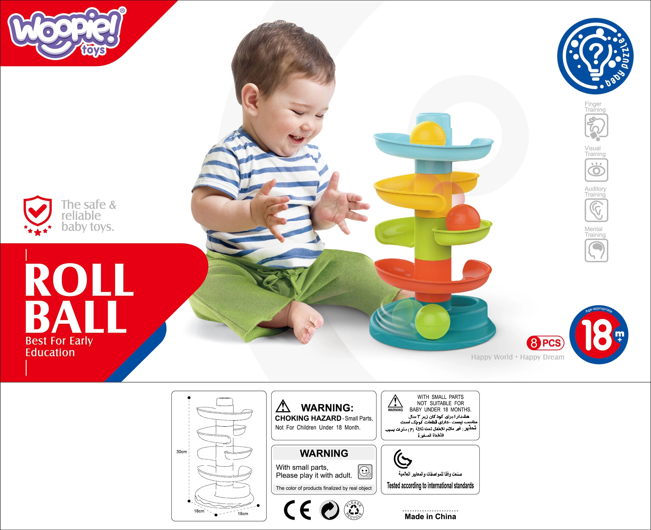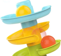 La pista de bolas de la marca Woopie es una torre espiral divertida que garantiza entretenimiento sin fin. Consta de 5 piezas de colores que los niños pueden apilar fácilmente y de 3 bolas ligeras, fáciles de agarrar y con sonido.