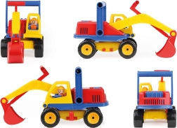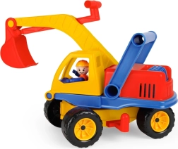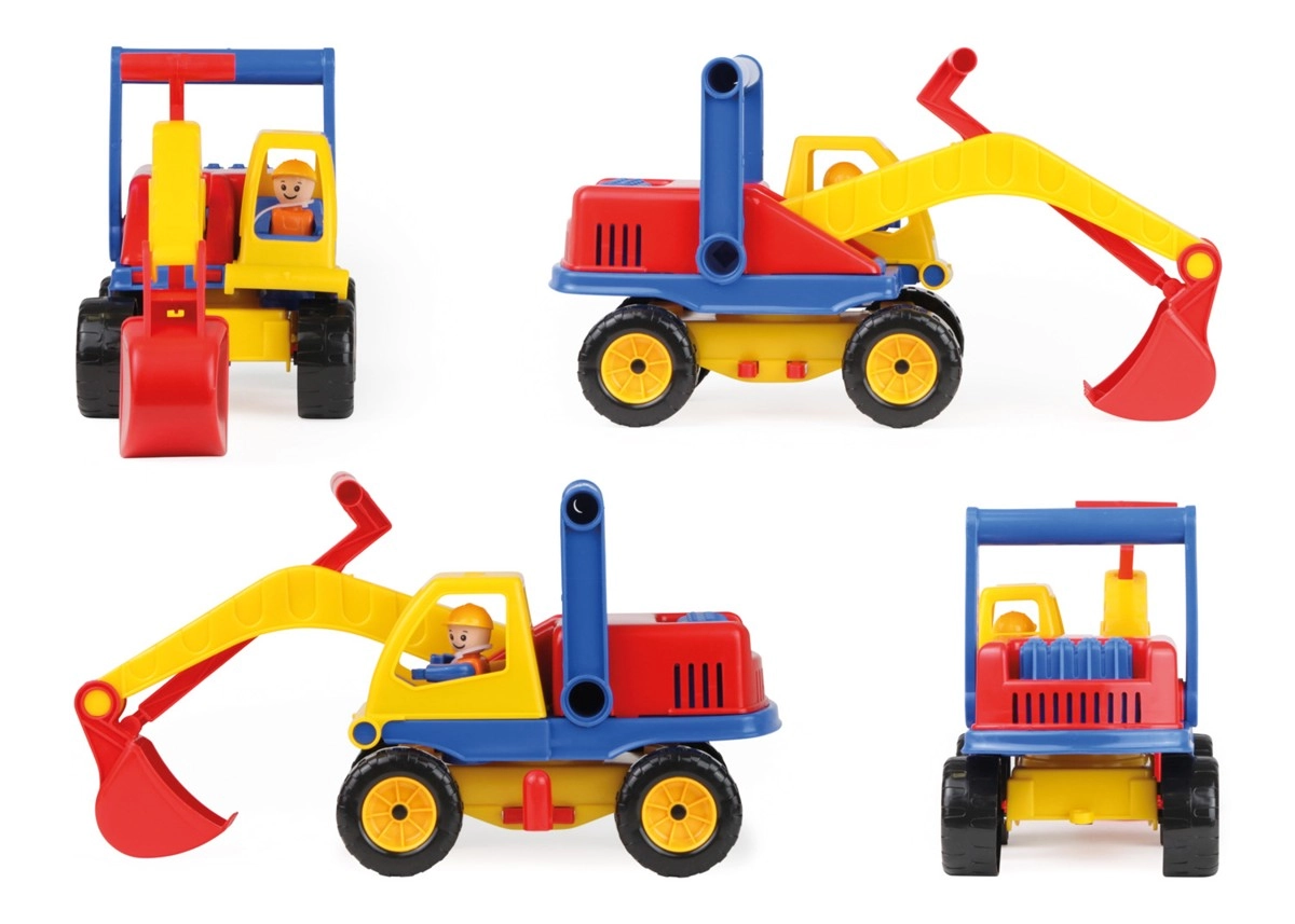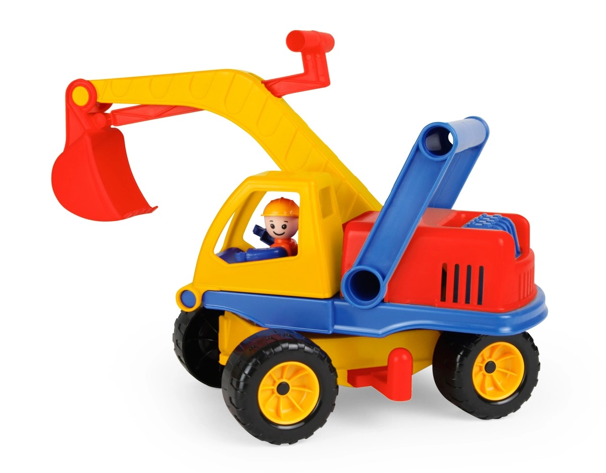 Esta robusta excavadora de plástico encantará a cualquier pequeño constructor. Gracias a la parte superior giratoria y al brazo con pala de fácil manejo, los niños pueden sumergirse en un juego realista de obra. La figura del conductor integrada añade imaginación al juego y favorece el desarrollo de la motricidad.