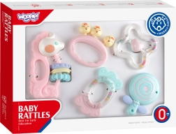 Práctico juego de 5 mordedores y sonajeros de colores de la marca WOOPIE que ofrece alivio durante la erupción de los dientes y, al mismo tiempo, favorece el desarrollo sensorial. Gracias a las diferentes texturas, formas convexas y cóncavas y a los suaves sonidos de los juguetes, se estimulan la vista, el oído y el tacto. Los productos están fabricados con materiales seguros y no tóxicos, una elección ideal para el juego diario y el alivio de las encías.