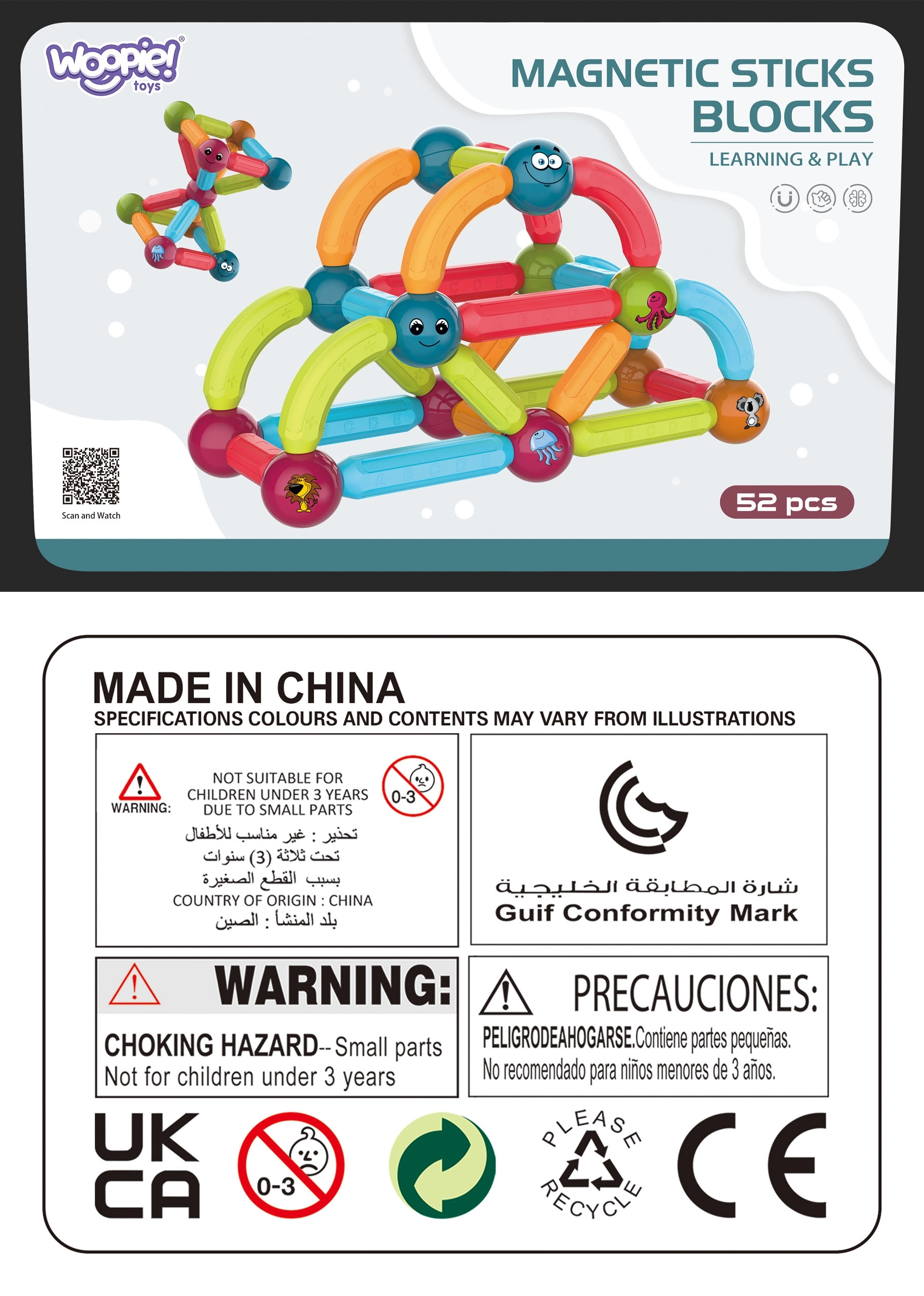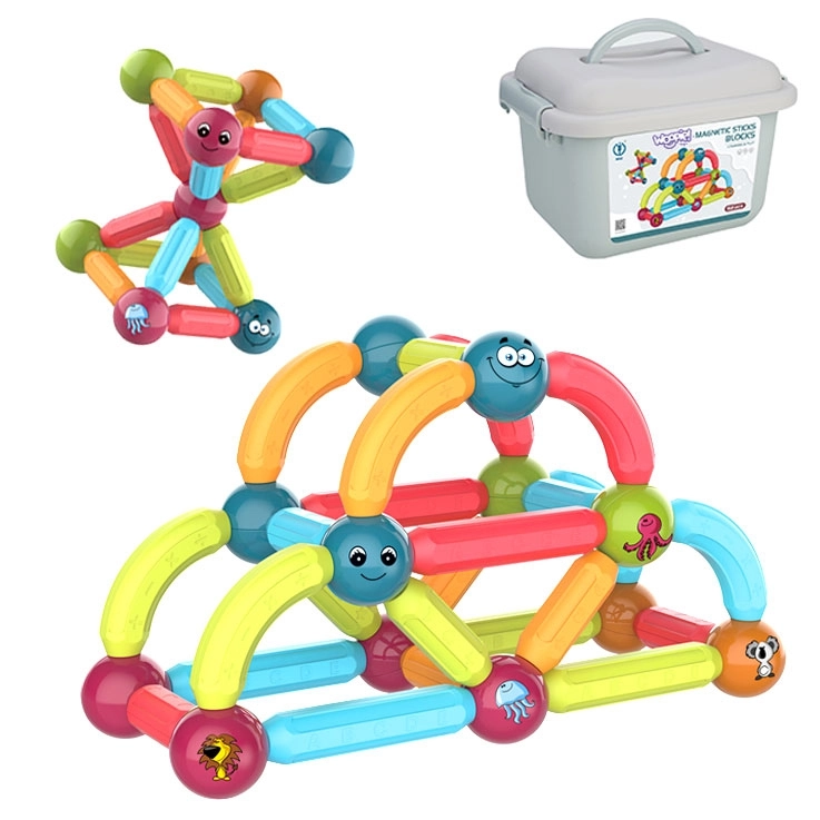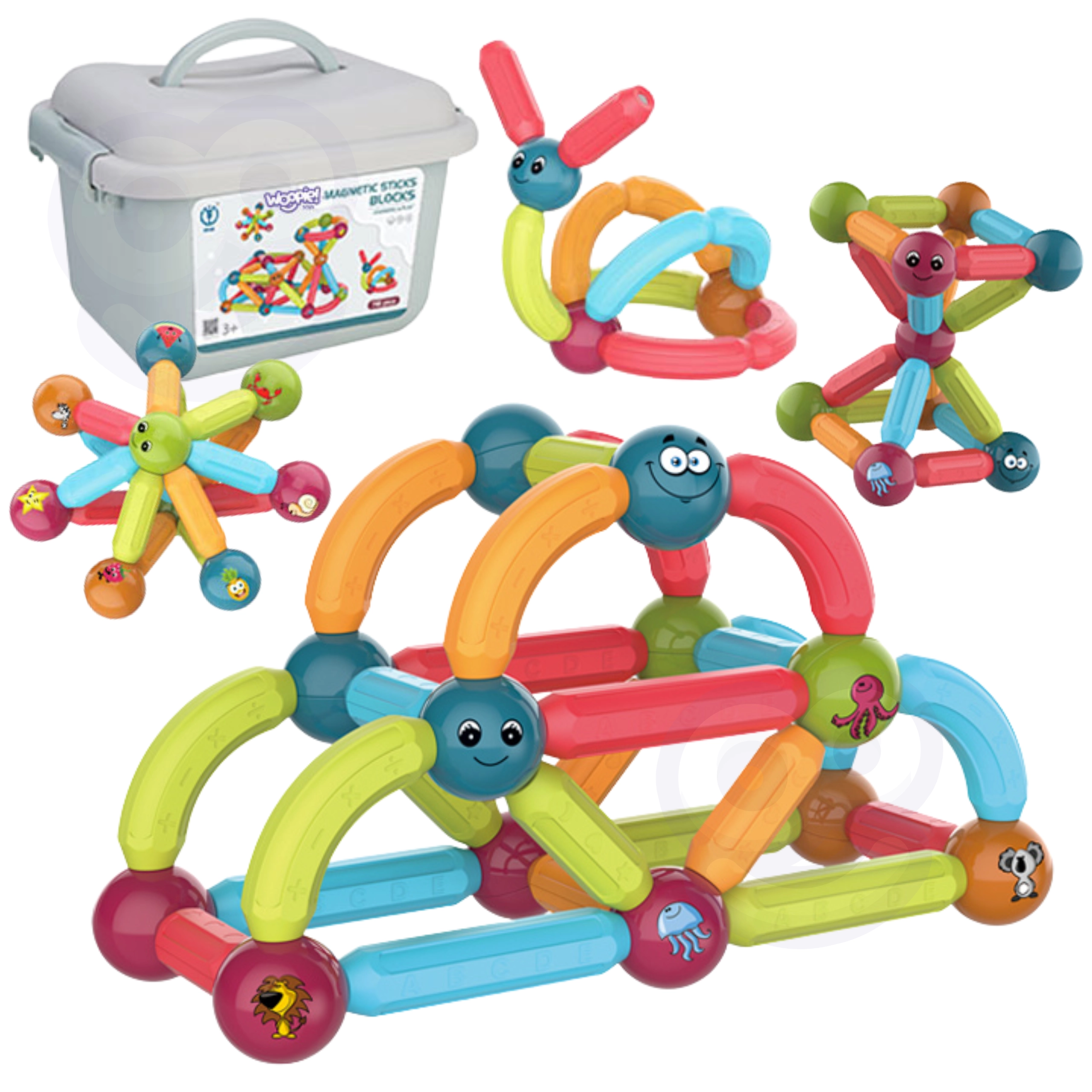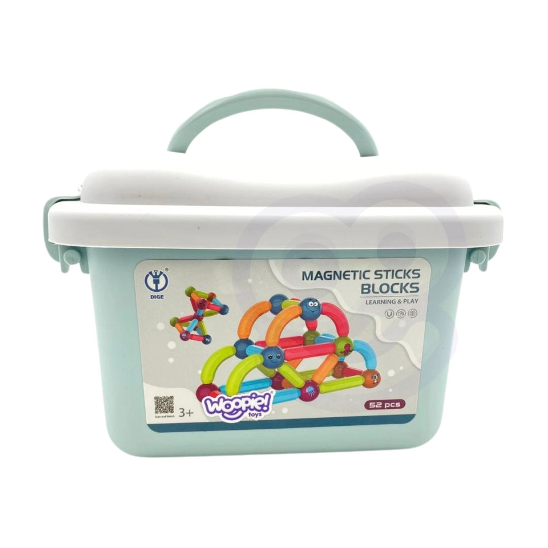 La diversión y el aprendizaje se unen en los bloques de construcción magnéticos de la marca Woopie. El set incluye 52 piezas coloridas y seguras ideales para manos pequeñas, que permiten construir diversos tipos de estructuras.