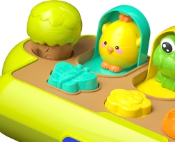 Descubre el aprendizaje divertido con el juguete emergente interactivo WOOPIE BABY, donde al activar distintos controles, de los compartimentos saltan adorables animalitos. Gracias a las diferentes formas de control – interruptor, rueda giratoria y botones – los niños entrenan la motricidad fina, la comprensión de la causa y efecto y la percepción sensorial. El juguete es sólido y resistente e incluye un silbato con forma de árbol. Las variantes de color de los animalitos se envían al azar.