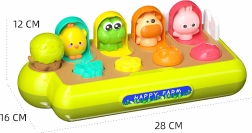 Diferentes controles (presionar, girar, deslizar) activan los animalitos ocultos. Los niños comprenden rápidamente las relaciones y practican la lógica y la coordinación.