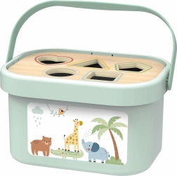 La tapa con orificios para las formas enseña a los niños a clasificar y reconocer formas y colores. Tras jugar, las piezas se pueden guardar dentro y transportar la caja cómodamente gracias a su práctica asa.