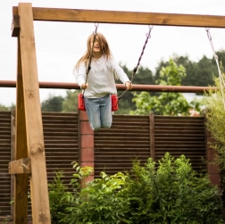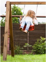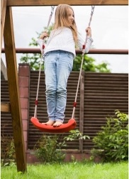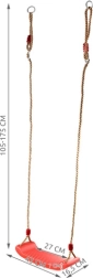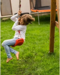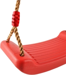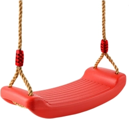 Columpio de plástico rojo con asiento de forma ergonómica que ofrece diversión y desarrollo de la motricidad para los niños tanto en el jardín como en casa. Gracias a las cuerdas resistentes con longitud ajustable entre 105–175 cm, ajustarás fácilmente la altura de suspensión a distintos lugares, desde la habitación infantil hasta la terraza o pérgola.