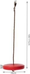 La longitud ajustable de las cuerdas de 100 a 175 cm permite regular la altura, lo que es adecuado tanto para espacios pequeños como grandes. El columpio está hecho de materiales de alta calidad resistentes a las condiciones meteorológicas y a los rayos UV, lo que garantiza una larga vida útil.