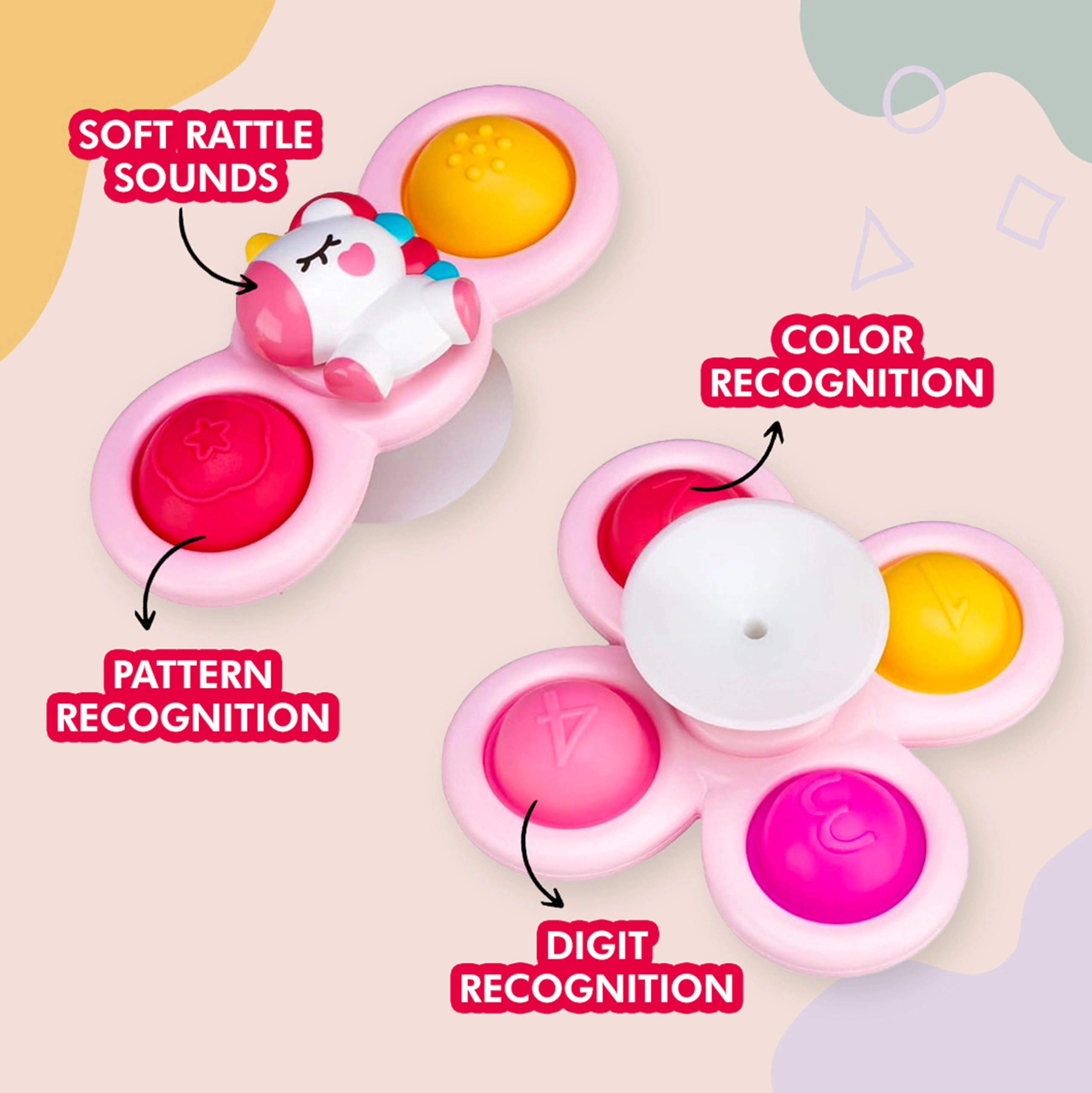 Spinners con forma de unicornio, estrella y nube para una creatividad sin límites.