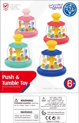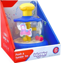 Al presionar la parte superior del carrusel, el caballo y las bolitas comienzan a moverse, ofreciendo un estímulo visual y táctil fascinante.