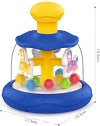 ¡Descubre el mundo a través del juego con el innovador juguete "Carrusel Divertido"! Está diseñado para los más pequeños exploradores y ayuda a desarrollar sus habilidades motoras, sensoriales y cognitivas. Basta con que el niño presione la parte superior amarilla del carrusel para que el caballo y las bolitas empiecen a moverse.