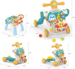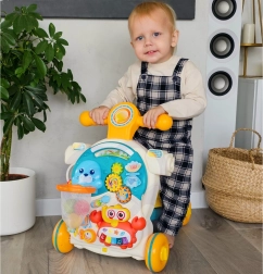 Este juguete es una verdadera fuente de sorpresas que el niño puede descubrir de forma independiente. La combinación de varias funciones en un solo juguete: andador, patinete, correpasillos y mesa educativa asegura que el juguete no se vuelva monótono.