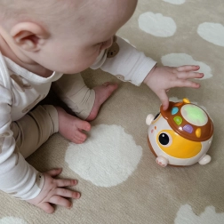 Este juguete interactivo incluye botones que, al presionarlos, activan diferentes sonidos y efectos luminosos, promoviendo el desarrollo sensorial de tu hijo.