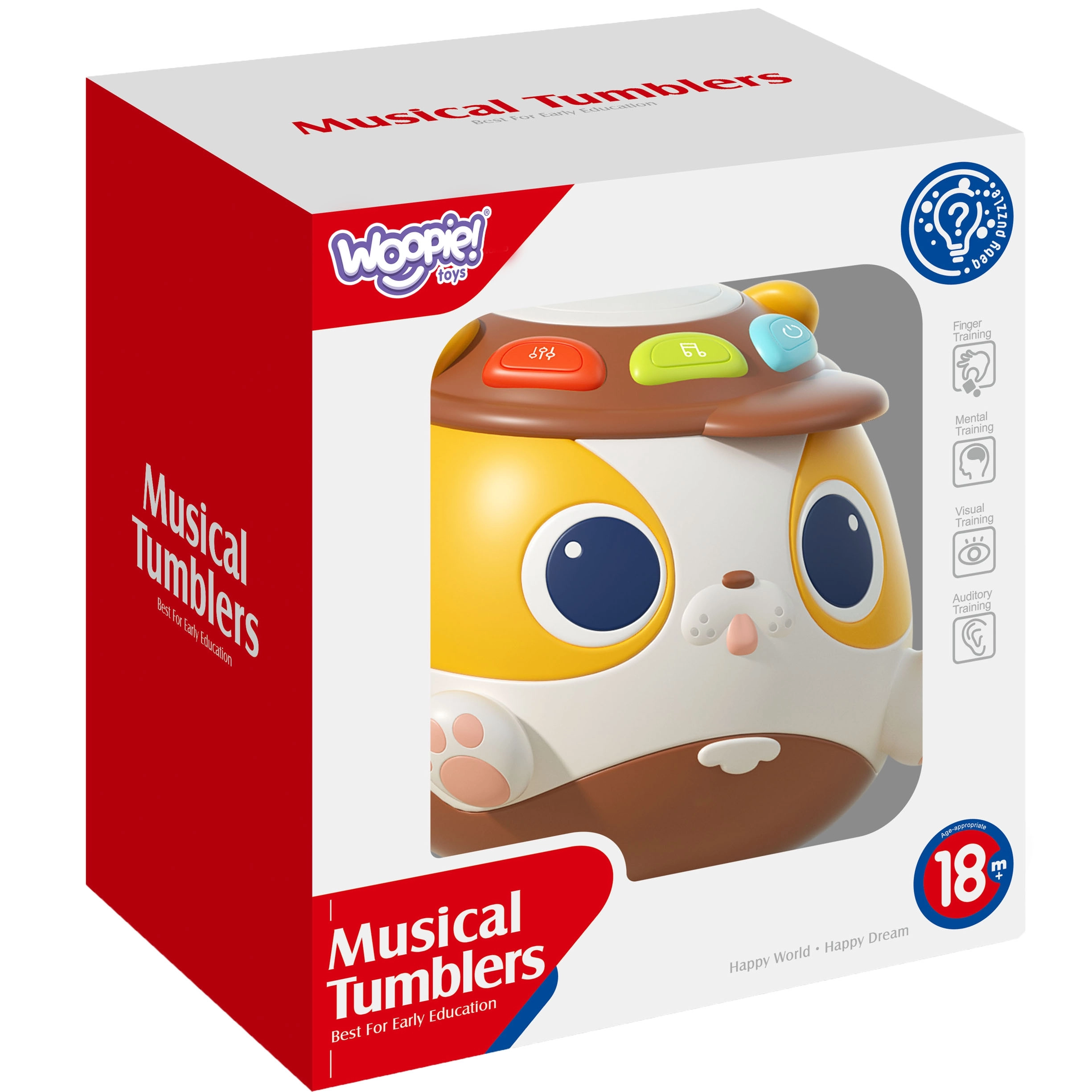 Perrito interactivo de la marca WOOPIE es un juguete musical que, con sus botones de colores, activa sonidos y efectos de luz, estimulando las habilidades visuales y auditivas de los niños. Ideal para niños a partir de 18 meses, fabricado con materiales seguros, es un gran apoyo para el desarrollo de la motricidad.