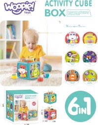 El colorido cubo interactivo WOOPIE ofrece 6 actividades en 1 para los más pequeños: pianito con luces, sonidos de animales, juego de reflejos, encajables de formas, engranajes, laberinto y reloj giratorio. Desarrolla la motricidad fina, la coordinación mano-ojo y la percepción sensorial. Diseño seguro con bordes redondeados y pinturas no tóxicas. Apto desde 6 meses.