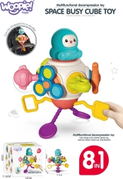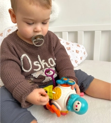 - 8 en 1 (astronauta giratorio, mecanismo de enrollado/mordedor, spinner, retorno por tracción, volante con sonidos, llave para el orificio, barco deslizante, botón con sonido)