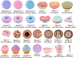 Incluye hasta 26 elementos diferentes, entre ellos un juego de té, café y varios dulces.