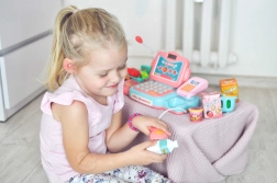Gracias al lector y la báscula integrada, los niños “escanean” fácilmente los productos y pesan frutas o verduras para una experiencia realista.