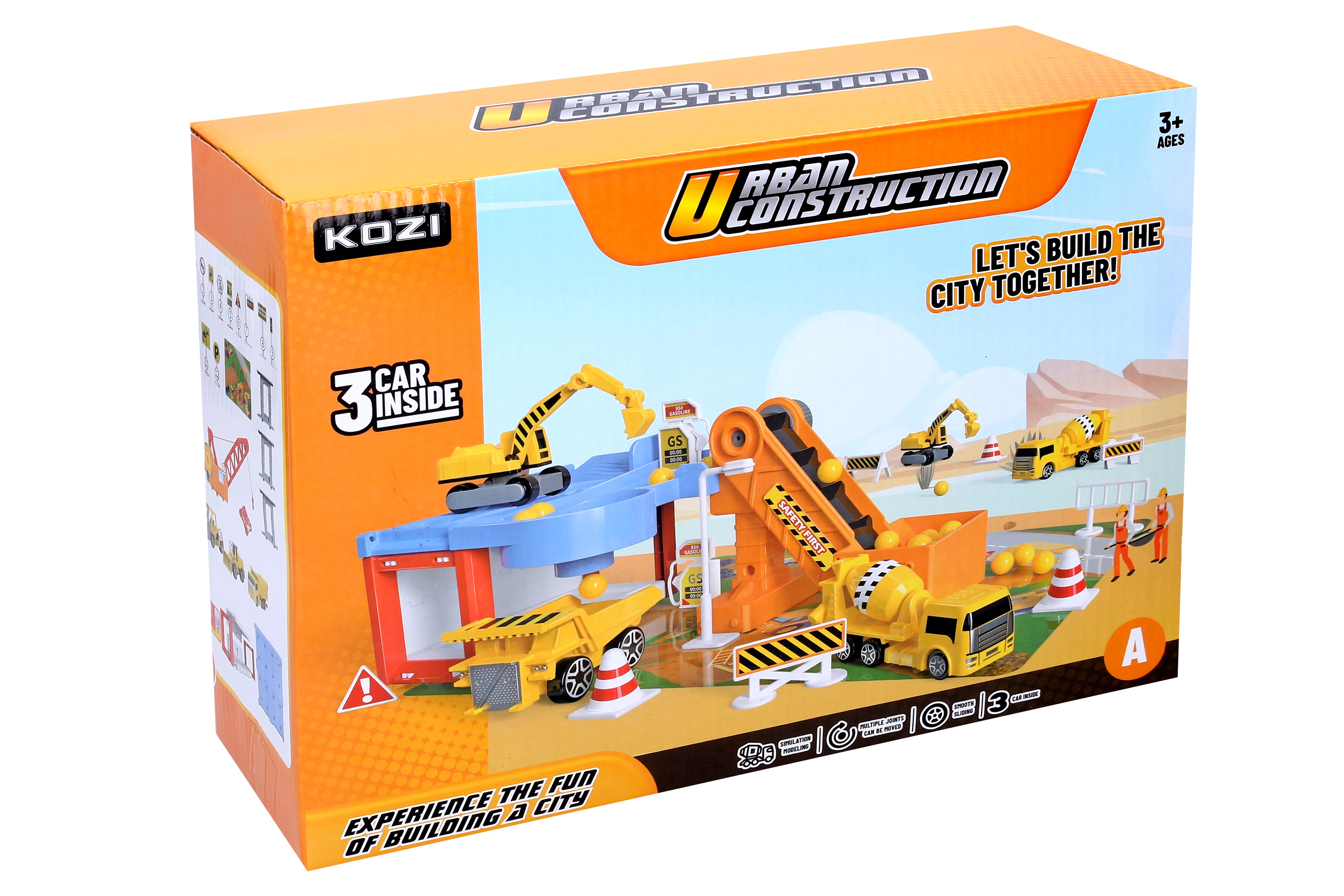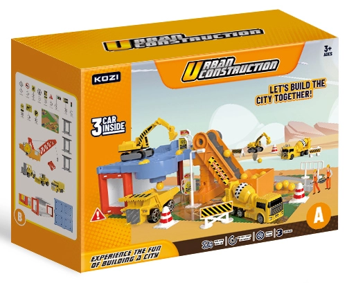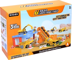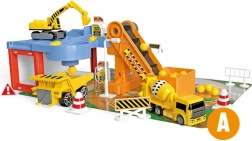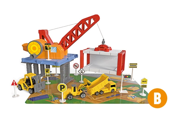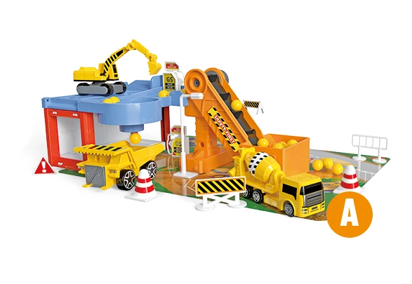 Este asombroso Garaje para coches de construcción incluye diversas máquinas de construcción, entre ellas un volquete, una excavadora y una hormigonera. Gracias a ello, los niños pueden desarrollar su creatividad e imaginación al crear distintos proyectos de construcción. El paquete también incluye una cinta transportadora y señales de tráfico, que aportan un toque realista al juego.