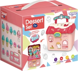 Esta confitería 2 en 1 portátil transforma cualquier lugar en una pequeña tienda de dulces. El maletín guarda un colorido set de accesorios: desde cucuruchos de helado y donuts hasta mini postres, gracias a los cuales los niños pueden montar su propio escaparate y oferta. El juego fomenta el juego de roles, la comunicación y el aprendizaje de las reglas del comercio.