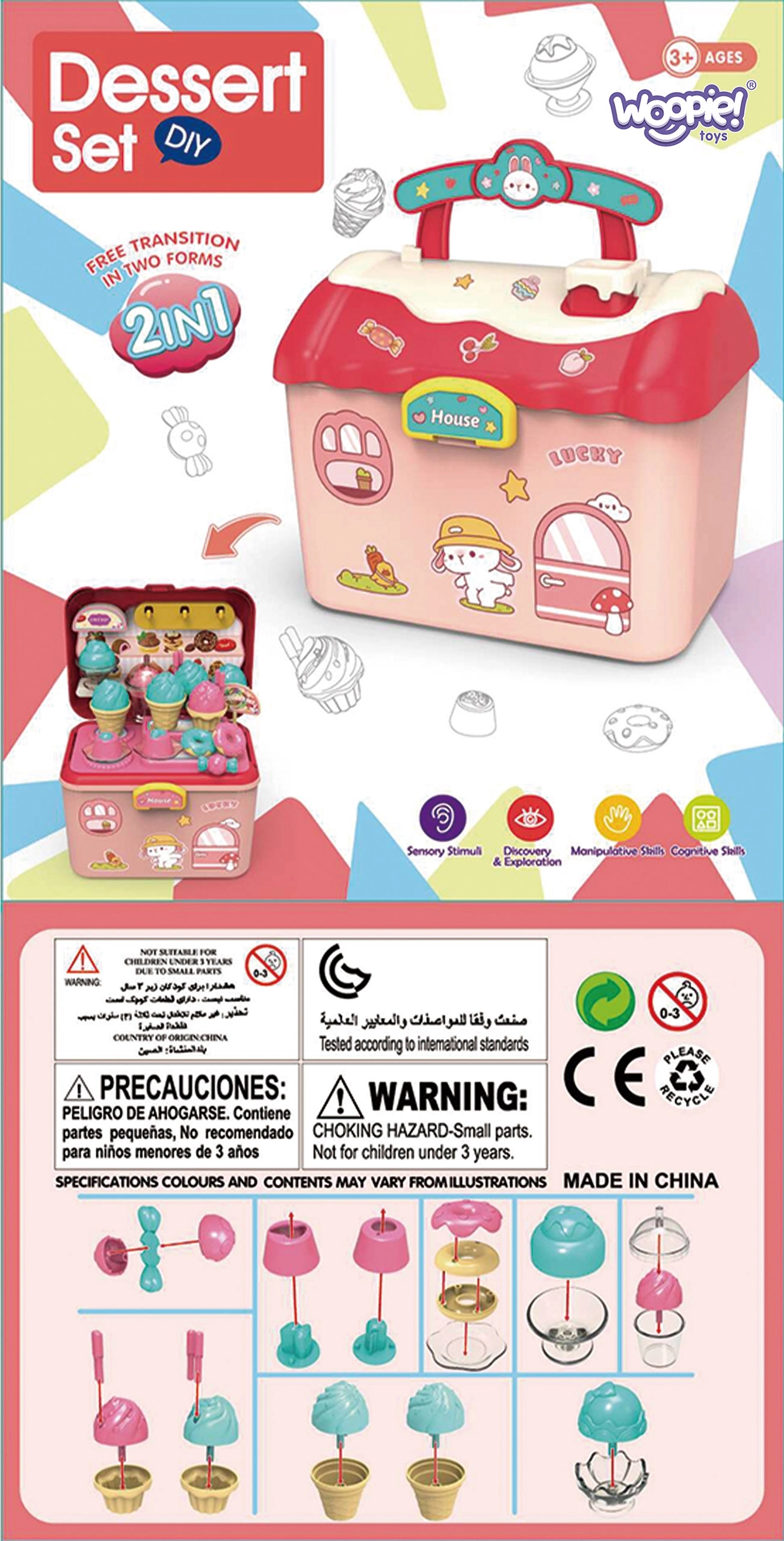 Una adorable confitería infantil en un maletín portátil de la marca WOOPIE que trae un mundo de dulces y fantasía. Los niños pueden jugar a ser pasteleros y vendedores, preparar helados, donuts, postres y pasteles y desarrollar creatividad, comunicación y motricidad fina. El maletín ligero con compartimentos y material seguro y resistente garantiza un juego cómodo en casa y de viaje.