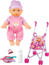 La muñeca Bebé con cochecito y set de alimentación es el juguete ideal para niños a partir de 3 años. Este set de juego permite a los niños practicar la motricidad fina y desarrollar su imaginación.